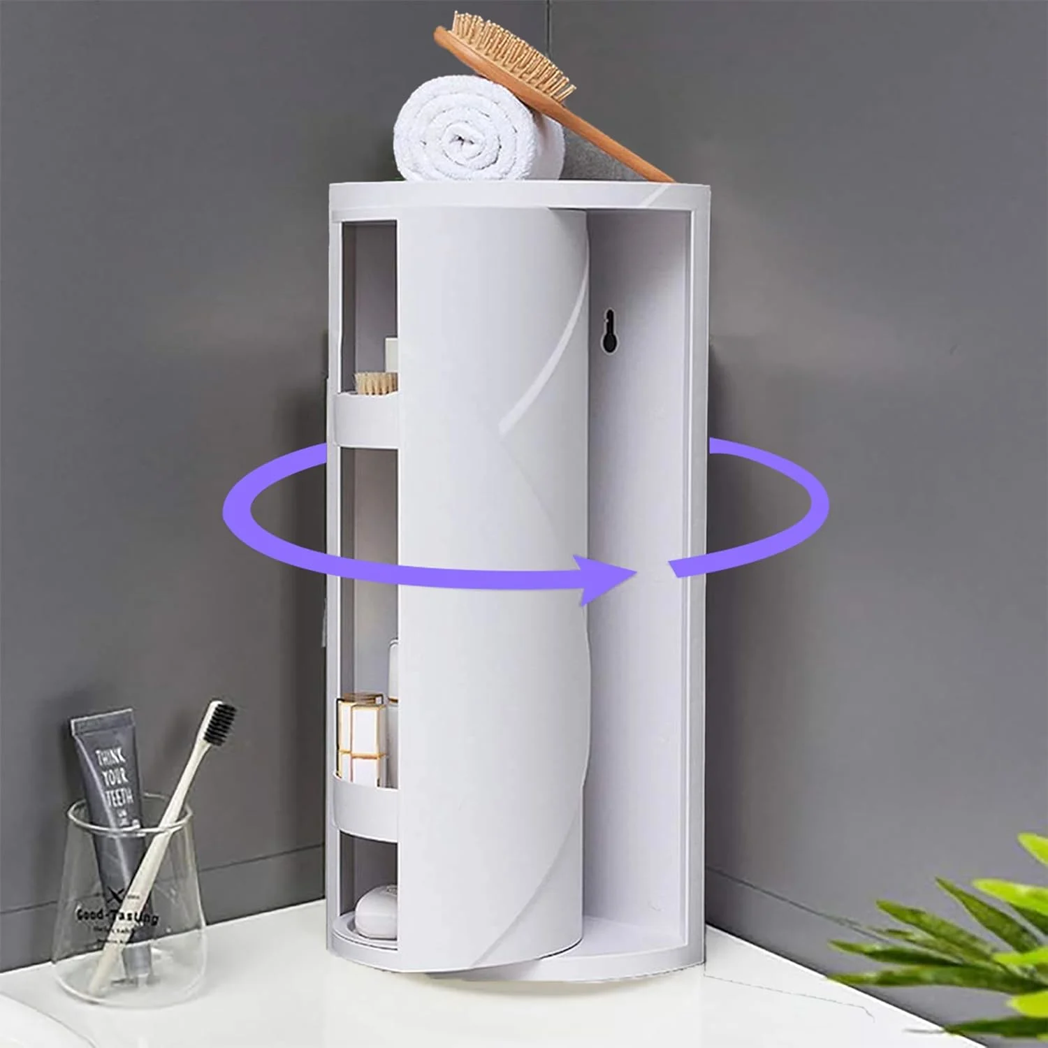 Plastic 360 Rotating Corner Shelves,3 Tier Storage Cabinet Towel Holder Rack, Corner Cabinets With Doors And Shelves For Bathroom Bathtub Toilet Table (White, Large)