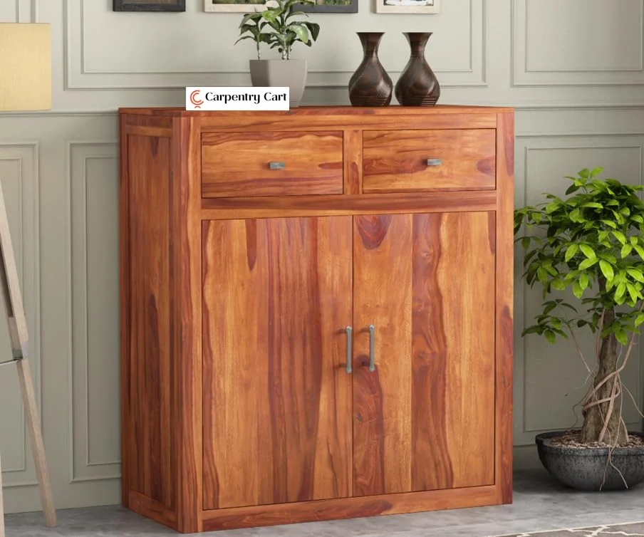 Sheesham Wood Construction: Crafted from high-quality solid Sheesham wood, this shoe cabinet features a natural wood grain finish that enhances its durability and adds a touch of elegance to your home decor. The robust construction ensures that it can withstand daily use, making it a long-lasting addition to your entryway, bedroom, or office.