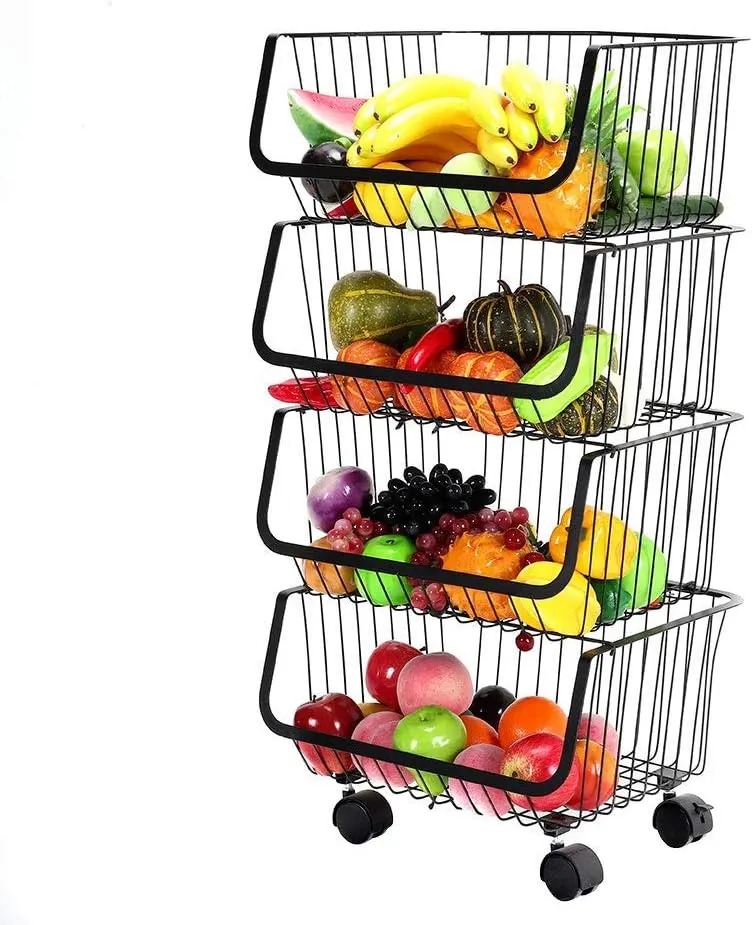 This versatile multi-tier rolling wire basket is designed to bring effortless organization and modern style into your daily routine. Crafted with a strong open-wire structure, it allows proper air circulation to keep fruits and vegetables fresh while giving you a clear view of stored items at all times. The tall, vertical design maximizes storage without occupying much floor space, making it ideal for compact kitchens, dining areas, pantries, or even living rooms. Its clean, minimalist look blends easily with both modern and traditional interiors.