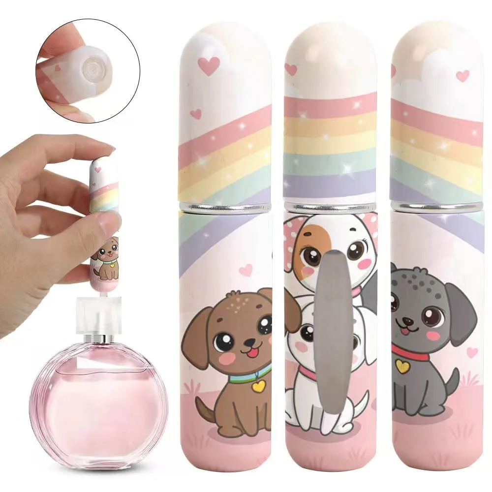 This cute cartoon mini perfume spray bottle is a stylish and practical solution for carrying your favorite fragrance wherever you go. Designed with adorable animal and pastel patterns, it adds a playful touch to your daily essentials while remaining compact enough to fit easily into pockets, handbags, cosmetic pouches, or travel kits. Its slim, lightweight body makes it ideal for on-the-go use without taking up extra space.