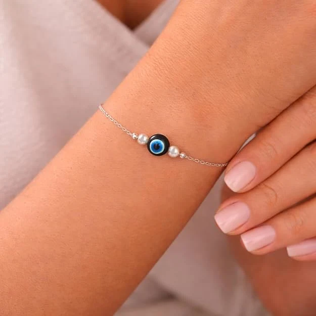This elegant evil eye bracelet is designed to combine timeless style with meaningful symbolism, making it a beautiful addition to everyday wear. Featuring a classic blue evil eye charm set on a delicate chain, it offers a minimal yet eye-catching look that complements both casual and dressy outfits. The slim profile rests comfortably on the wrist, adding a subtle touch of charm without feeling heavy or overpowering. Its refined design makes it suitable for daily use, special occasions, or thoughtful gifting.