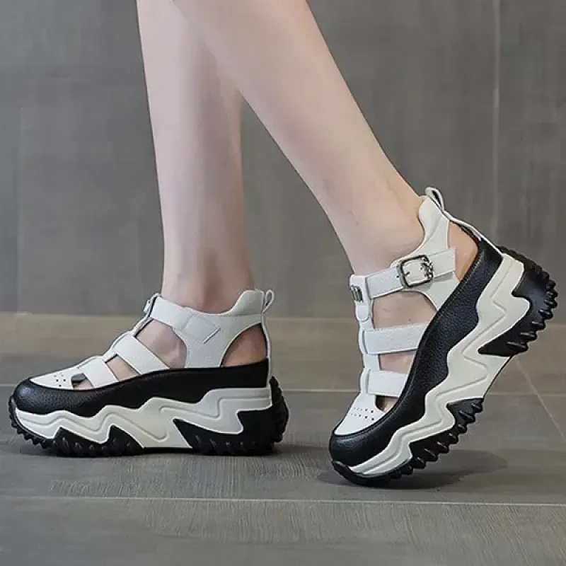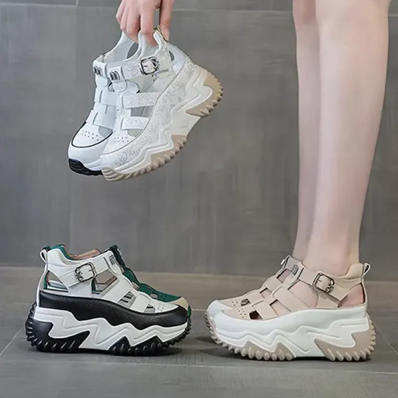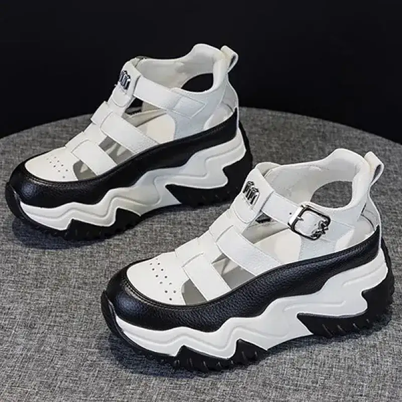 These chunky platform sandals are designed to combine modern fashion with everyday comfort, making them a stylish addition to any casual wardrobe. Featuring a bold layered sole and clean, contemporary lines, they add an edgy yet versatile look that pairs effortlessly with dresses, jeans, shorts, or casual outfits. The closed-toe design with cut-out detailing offers a balanced mix of protection and breathability, ideal for daily wear.
