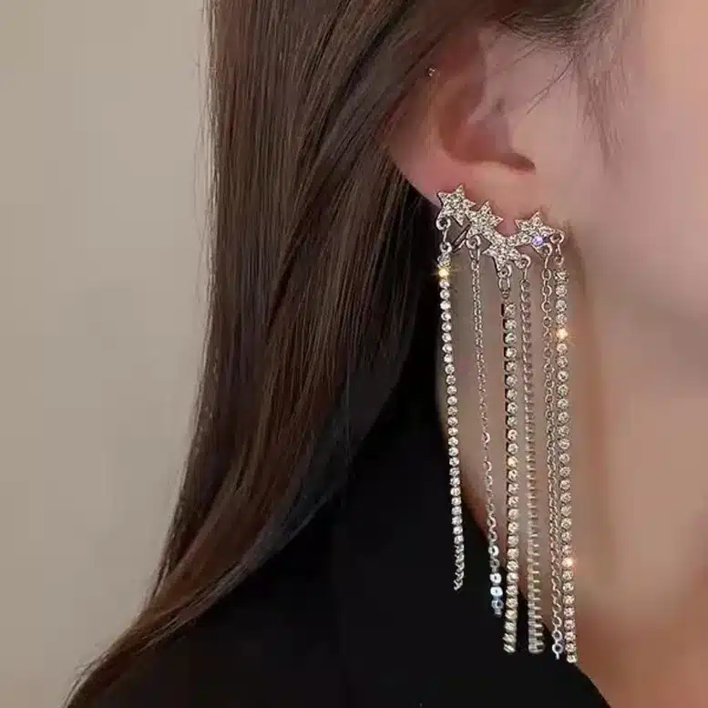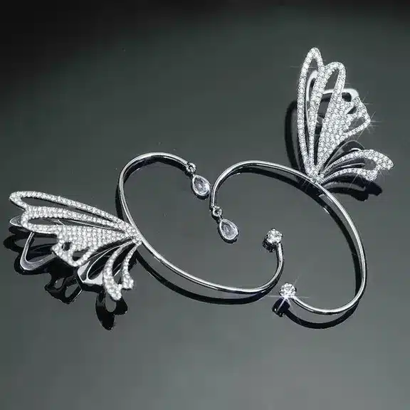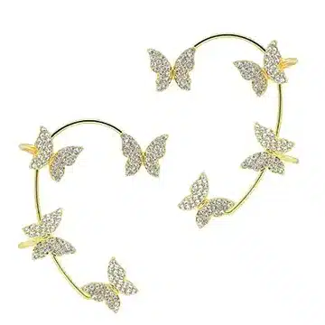 The highlight of this accessory is the beautiful butterfly design, symbolizing beauty, freedom, and transformation. The butterfly motif is carefully crafted and embellished with shimmering crystals that reflect light beautifully, giving the earrings a dazzling and stylish appearance. The delicate detailing makes the design stand out while maintaining a lightweight and comfortable feel.