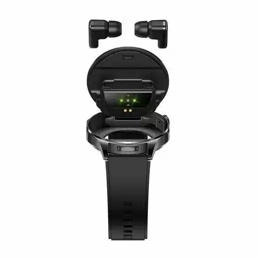 What makes this smartwatch unique is the built-in magnetic charging compartment that securely stores and charges the wireless earbuds directly inside the watch case. Simply open the top cover to access your earbuds anytime, anywhere — no extra charging case required.
