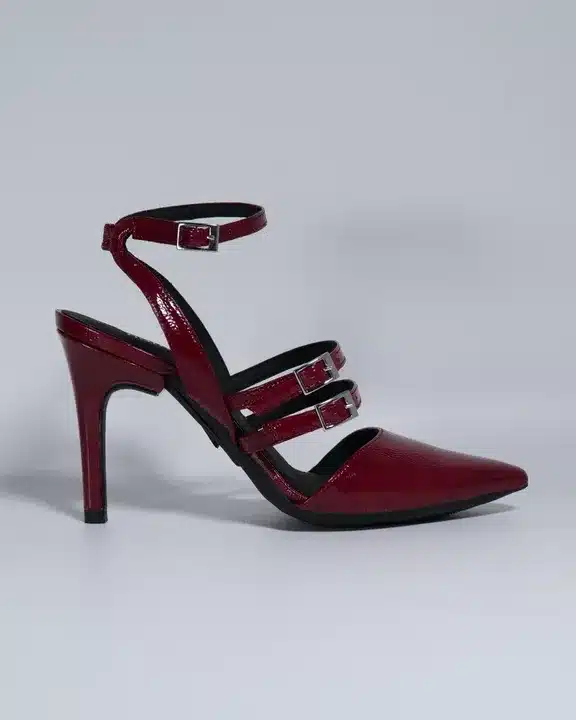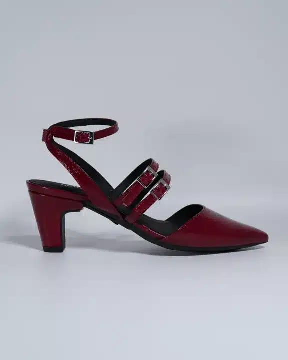 Step into effortless elegance with these Women’s Stylish Pointed Toe Block Heel Sandals, designed to bring together modern fashion and everyday comfort. These chic sandals feature a sleek pointed toe and stylish double buckle straps that add a sophisticated touch to your overall look. The deep wine-red finish gives the footwear a bold and classy appearance, making it perfect for women who love to stand out with subtle elegance.