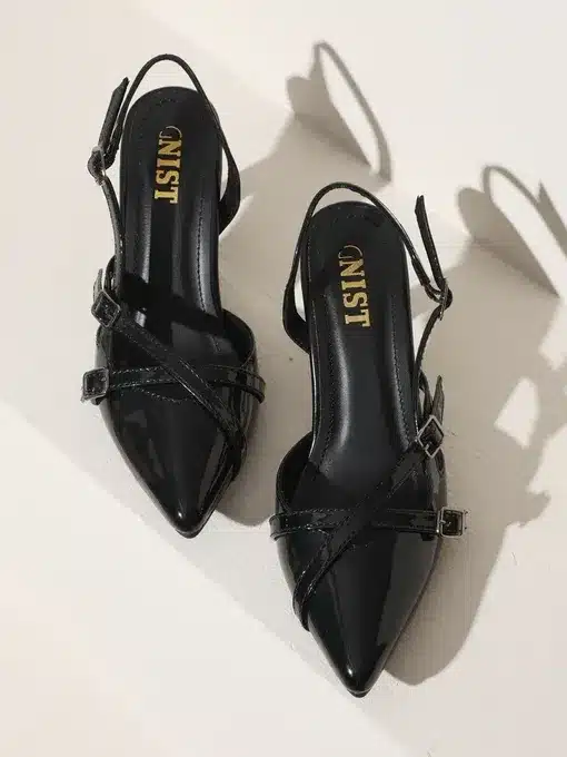 The Stylish Black Pointed Toe Strap Heels are a sophisticated footwear choice that combines elegance with modern fashion. Featuring a sleek pointed-toe design and supportive strap detail, these heels create a refined silhouette that enhances any outfit. Their timeless black color makes them versatile enough to pair with both formal and casual styles.
